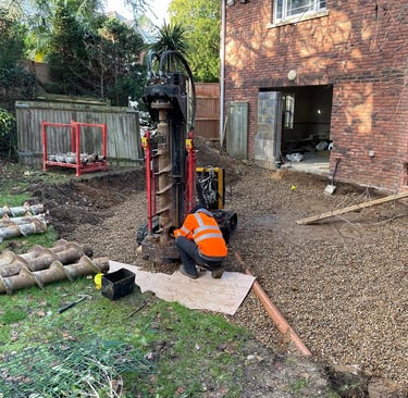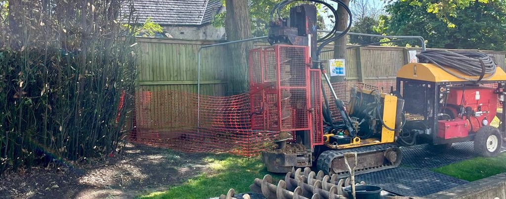 A TPO Piling job often involves using a lighter piling rig with a reduced diameter, and may also involve a manual survey of the ground with hand-held equipment. This is to determine how far the tree roots have extended, and where piles can be placed without damaging them.
